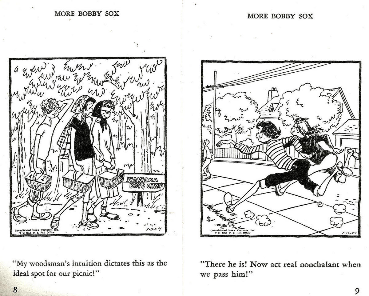 I'm always surprised that there haven't been more female cartoonists; any women would seem to have been crowded out by the male cartoonists, who outnumbered them. But many women were very fine cartoonists, including Marty Links, who drew "Bobby Sox," title later changed to "Emmy Lou," from 1944 to 1979. Links, whose first name was Martha, was a member of the National Cartoonists Society. After closing down "Emmy Lou" she went into greeting cards and Kidlinks.